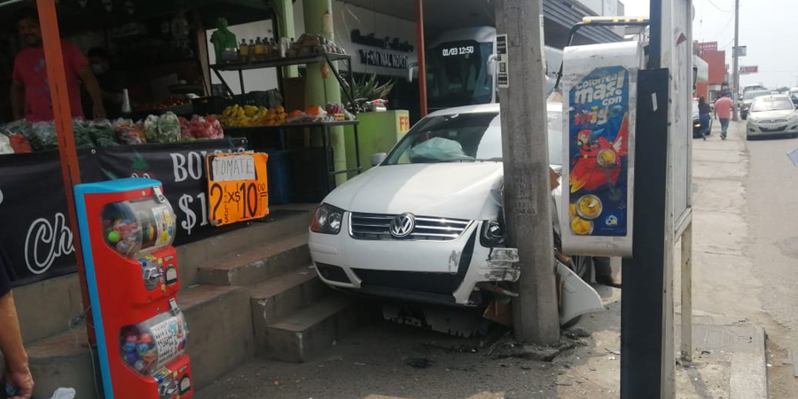 Un poste de concreto detuvo la loca carrera de un automovilista que se desplazaba por la carretera Tampico Mante, minutos después del mediodía del lunes.