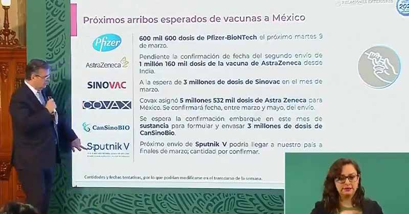 El canciller Marcelo Ebrard comentó que estas dosis serán producidas en Corea del Sur y que son de la farmacéutica AstraZeneca.