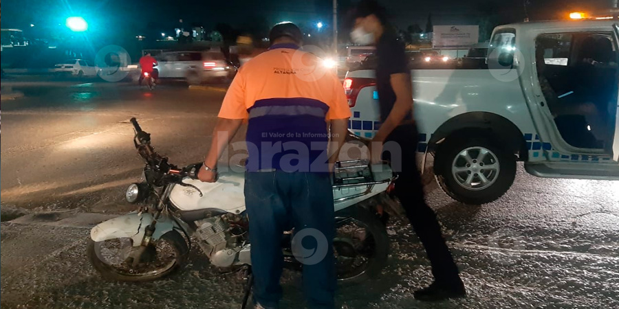 Un motociclista y su acompañante resultaron lesionados luego de que los embistiera un automóvil, cuyo conductor huyó del sitio en su unidad.
