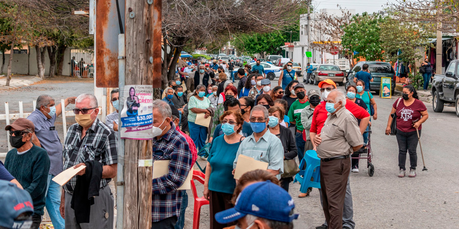CIUDAD VICTORIA.- En el primer día de la jornada de vacunación contra el Covid-19 para adultos mayores de 60 años en Ciudad Victoria, se aplicaron este lunes cerca de 5 mil dosis de la vacuna Pfizer, con largas filas desde las 9 de la mañana hasta después de las 8 de la noche.