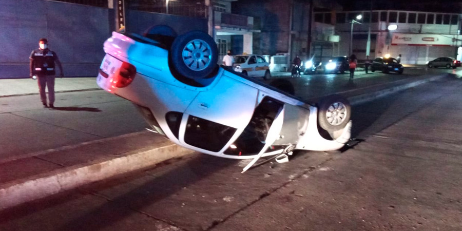 Raudo vehículo se volcó en calles de la colonia Volantín de Tampico, resultando ileso el conductor de la unidad.