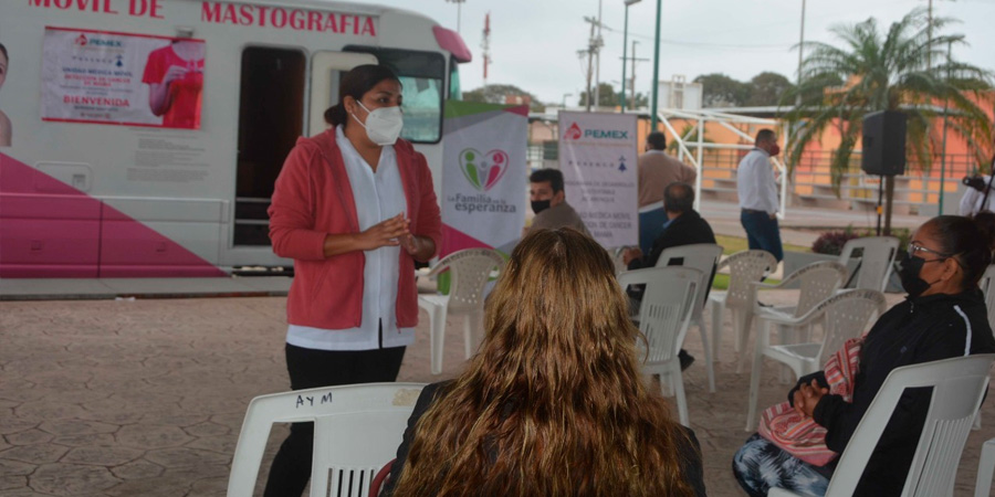 Por medio del Programa de Desarrollo Sustentable 2020, Petróleos Mexicanos (PEMEX) y la empresa petrolera Perenco México, pusieron en marcha la Campaña de Mastografías que se realiza mediante una Unidad Médica Móvil (UMM).