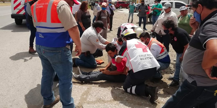 Dos trabajadores de Servicios Públicos de Altamira fueron atropellados en la avenida Altamira a la altura del cuartel de bomberos en el carril de norte a sur.