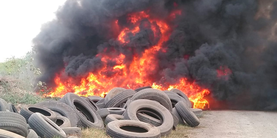 Enormes columnas de humo generó un incendio en un botadero clandestino, en el que se quemaron cientos de llantas, la tarde del jueves.