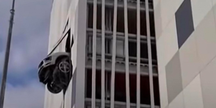 Quedo colgando en un edificio un Porsche luego de terrible descuido del dueño