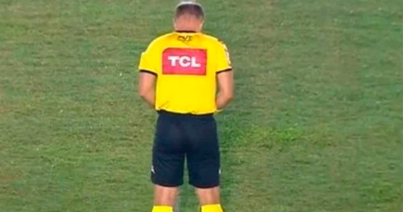 El árbitro brasileño Denis da Silva Ribeiro Serafim provocó un escándalo al ser captado orinando en pleno campo de juego