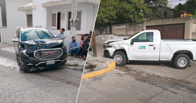 Camioneta de CFE se pasa alto y choca
