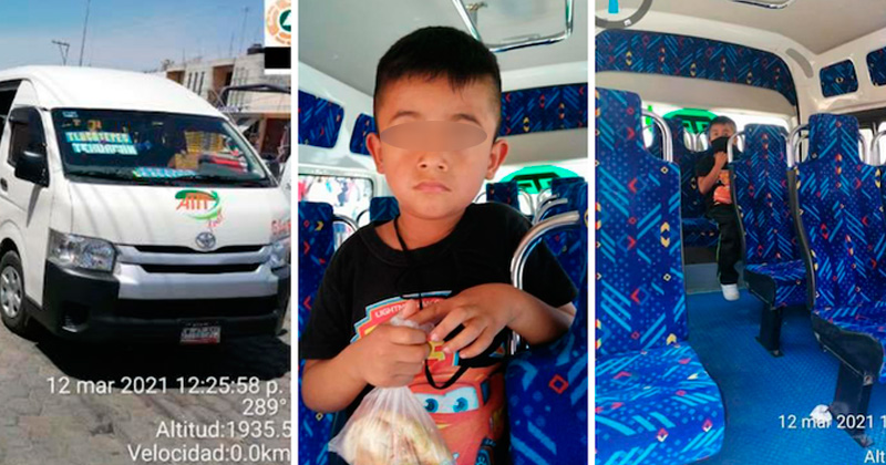 Un niño de 4 años fue olvidado por su abuelita en una combi del municipio de Tlacotepec de Benito Juárez, Puebla.