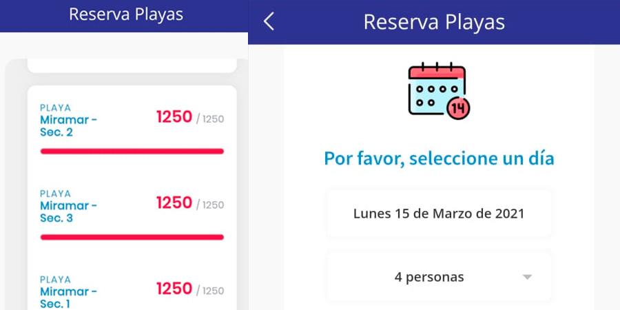 SUR.- Para este lunes, se encuentran al máximo de su reservación seis de las ocho secciones de Playa Miramar.