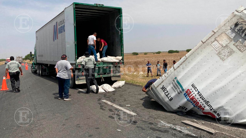 Vuelca trailer cargado con toneladas de azúcar; evitan rapiña