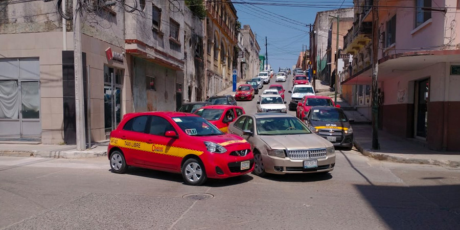 Por tratar de ganarle el paso a otro vehículo, un auto del transporte público chocó con esa unidad, en calles de la zona centro de Tampico.