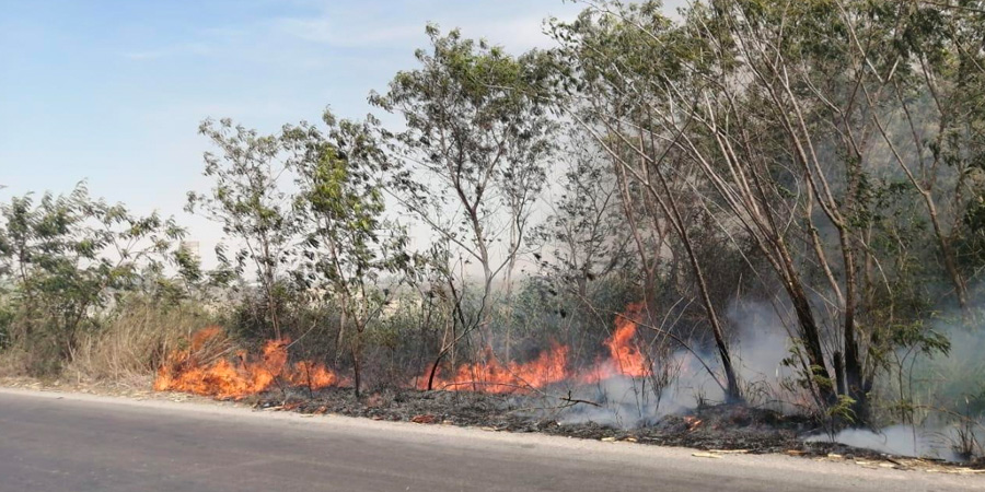 El incendio es sofocado en este momento por elementos de Protección Civil y Bomberos, utilizando un camión y mochilas aspersores para tratar, pie tierra de controlar la situación.