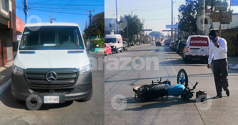 La unidad de servicio de paquetería le cierra el paso y los deja lesionados.