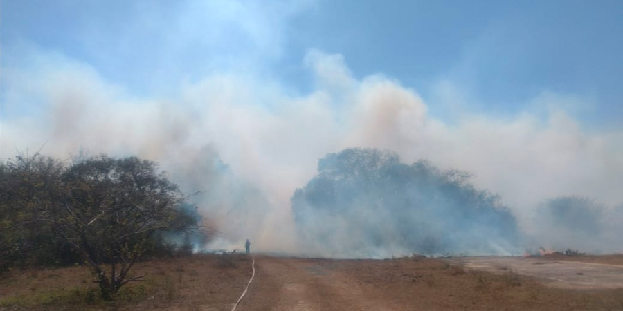 Los trabajos de reparación del Corredor Urbano Luis Donaldo Colosio, generaron un incendio de pastizal la tarde de este jueves.