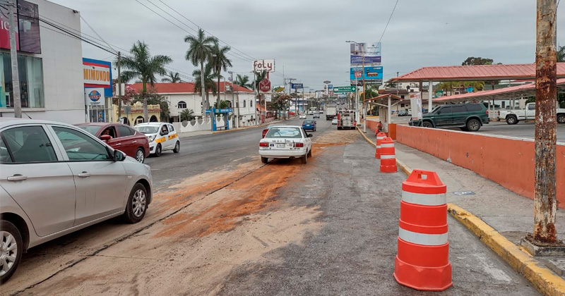 CIUDAD MADERO, TAMAULIPAS.- Dos motociclistas resultaron lesionados al derrapar la mañana de este lunes en Ciudad Madero, debido a que una retroexcavadora derramó aceite.