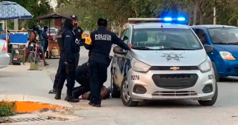 Videos difundidos en redes sociales muestran el momento en que una mujer fue sometida contra el piso en calles de Tulum, la tarde del sábado, supuestamente por alterar el orden público.