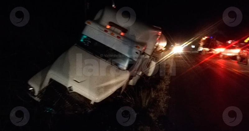 Por la forma en cómo terminaron ubicados los dos vehículos se Indicó que la tragedia se derivó luego de que el conductor del auto compacto invadiera el carril contrario para terminar colisionando de frente el enorme tractocamión.