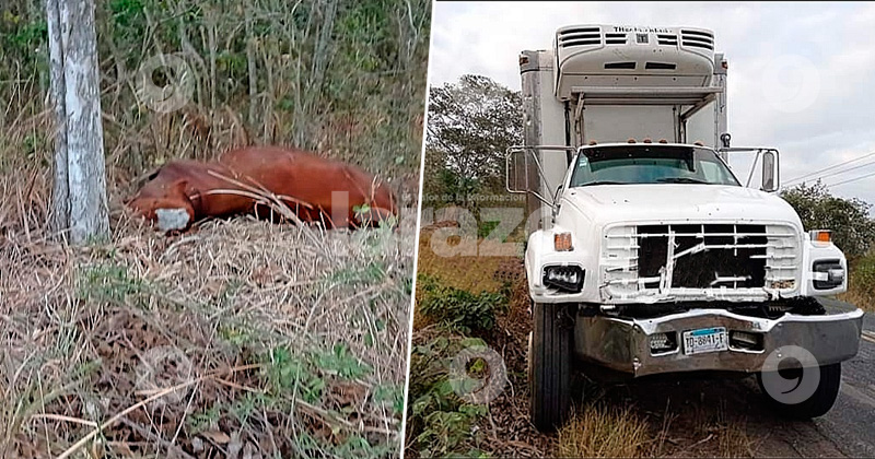 PÁNUCO, VER.- De nueva cuenta la vagancia de semovientes casi ocasiona una desgracia, luego de que el conductor de un camión impactara a una vaca, la cual murió al instante, estando la pesada unidad a nada de volcarse.