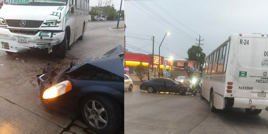 Elevados daños materiales dejó brutal encontronazo en el que participaron un microbús del transporte público y un vehículo particular, la mañana del viernes.