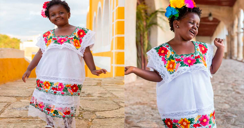 Niña de Chicago se hace viral por portar con orgullo traje yucateco