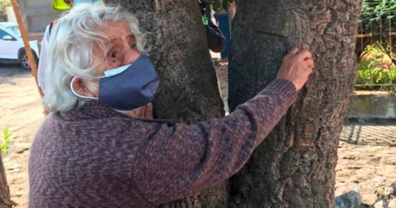 Abuelita protege con su cuerpo un árbol para evitar lo talen