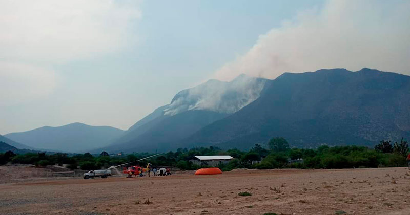 El incendio forestal se encuentra activo en el Cerro de San Miguel, de ese municipio, donde Protección Civil trabaja con un helicóptero para tratar de contenerlo