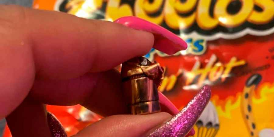 El niño de 6 años encontró la bala envuelta en el polvo de la misma fritura cuando se encontraba comiendo sus Cheetos Flamin Hot.