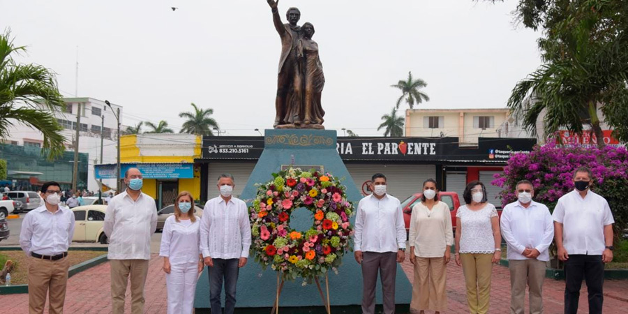 Con motivo del 198 aniversario de la repoblación de Tampico, autoridades municipales encabezadas por el alcalde Chucho Nader y su esposa, Aída Féres de Nader, Presidenta del Sistema DIF, llevaron a cabo una breve ceremonia en el monumento erigido a los fundadores de la ciudad, frente al Auditorio Municipal.