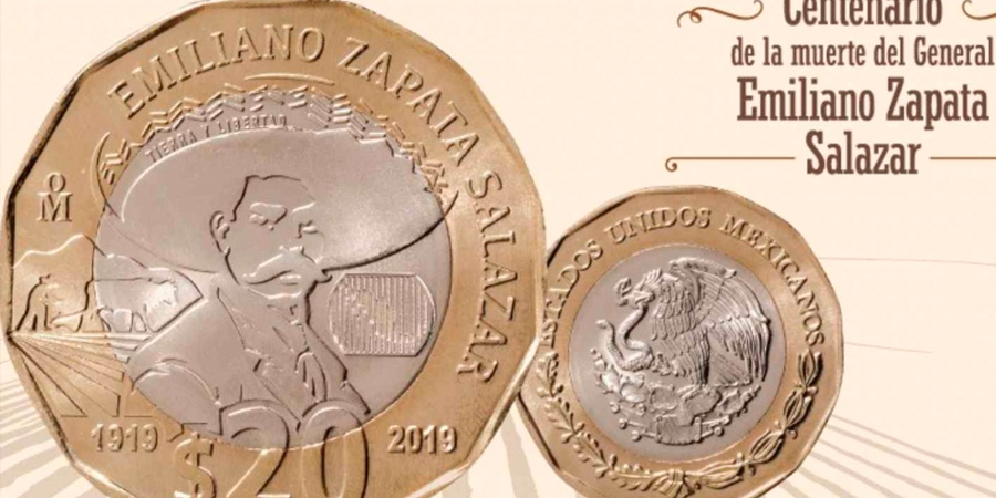 Este lunes, en sus cuentas de redes, el Banco de México informó que puso en circulación la nueva moneda de 20 pesos en conmemoración del centenario de la muerte del caudillo del sur