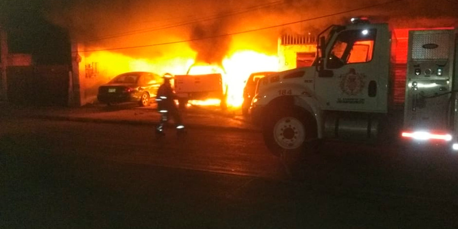 Sujetos incendiaron una camioneta que estaba dentro de un taller mecánico en Pánuco.