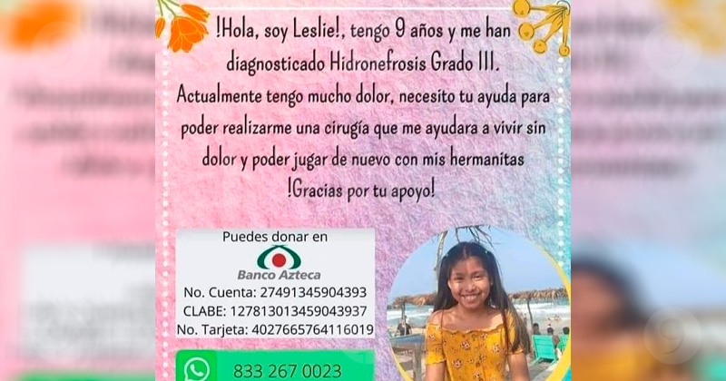 Vecinos y familiares se han unido a la causa por lo que han realizado distintas rifas, ya que Leslie requiere de una cirugía de urgencia.
