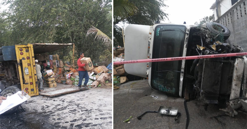 Vuelca trailer con 20 toneladas de Plátano