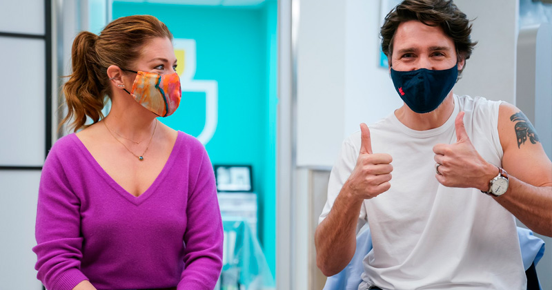 Justin Trudeau y su esposa reciben la primera dosis de vacuna Covid