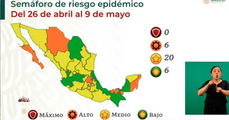 Según el semáforo presentado esta tarde, el estado vuelve al nivel de riesgo epidemiológico medio