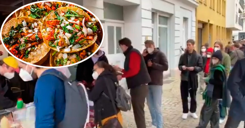 Se hizo viral un video en el que se ve una larga fila de ciudadanos alemanes esperando por unos deliciosos tacos al pastor