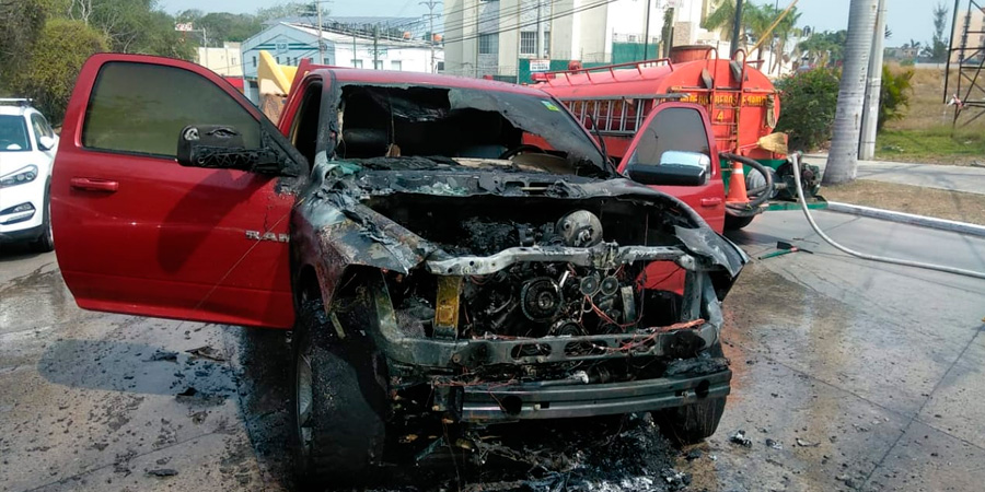 Una camioneta que circulaba sobre la avenida Rivera de Champayán en Tampico, se incendió la mañana del sábado, movilizando a elementos de Tránsito y de bomberos.