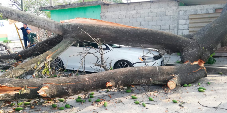 Árbol destroza automóvil de reciente modelo