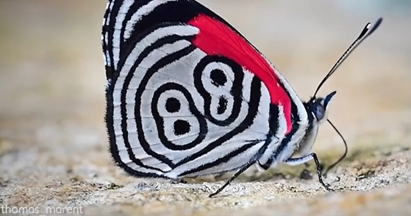 Esta espectacular mariposa no es un espécimen genéticamente modificado en un laboratorio. Tampoco es una víctima de un acto vandálico o de maltrato.
