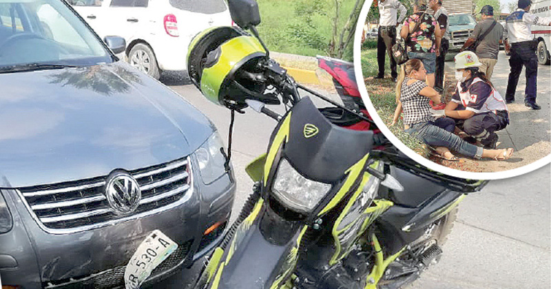 Anciana toma ‘a la brava’ el conflictivo distribuidor y se lleva se encuentro a una pareja en motocicleta, que terminó tirada en el pavimento