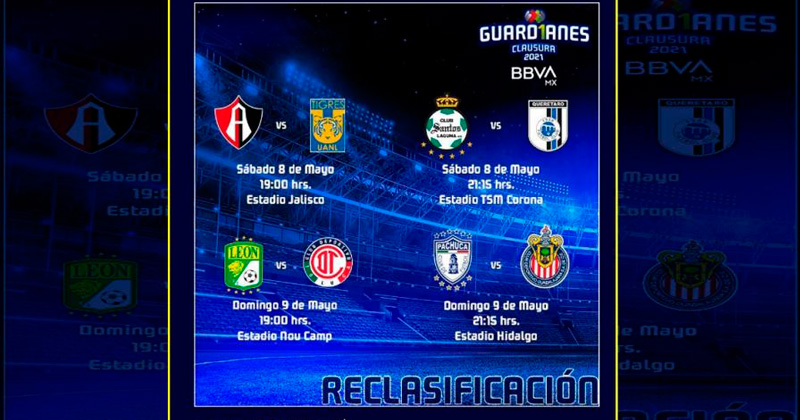 Santos, Querétaro, León. Toluca, Atlas, Tigres, Pachuca y Guadalajara jugarán la fase de reclasificación en el Guardianes 2021 de la Liga MX