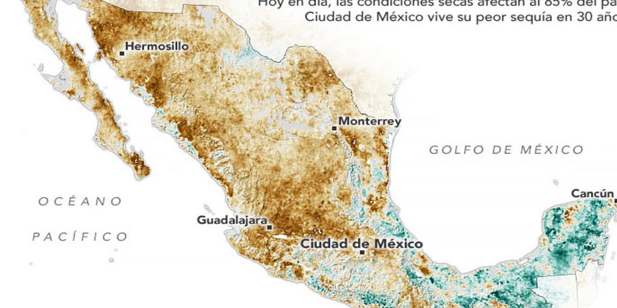 Grandes presas en todo México se encuentran en niveles excepcionalmente bajos, lo que agota los recursos hídricos para beber, cultivar y regar, detalló en un comunicado la NASA.