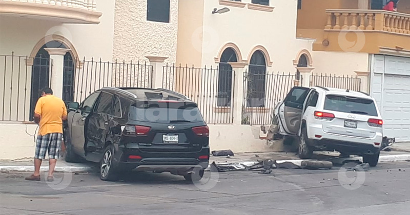 Camionetas terminan «estrelladas» con barda en Ciudad Madero