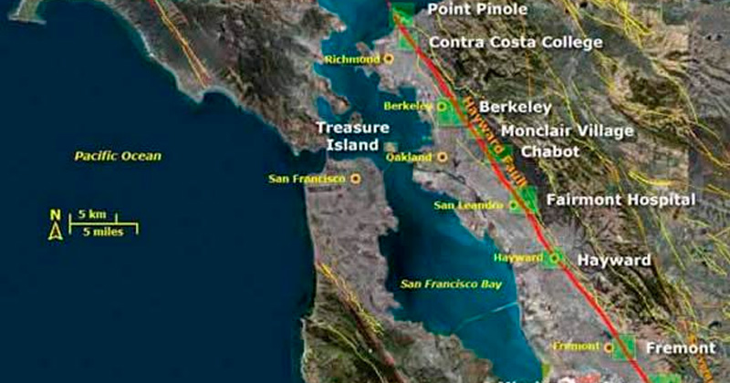 Se trata de la falla de Hayward que corre a lo largo del lado este de la Bahía de San Francisco, y es una de las más activas y peligrosas de Estados Unidos porque atraviesa una región densamente urbanizada e interconectada.