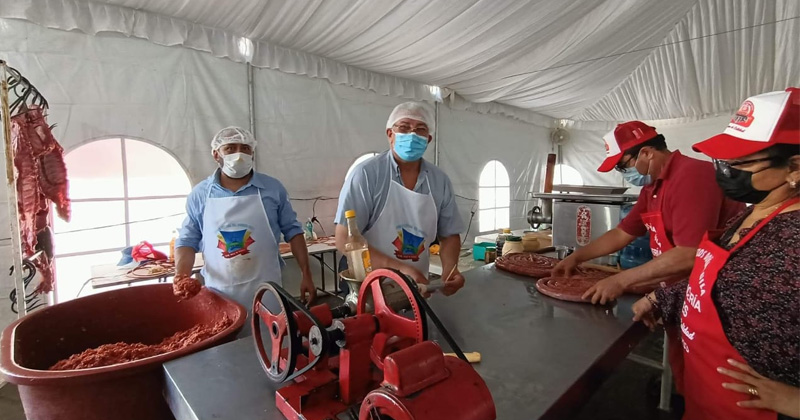 Con la participación de 17 carniceros locales, dicha actividad se está llevando a cabo en medio de una fiesta popular con todas las medidas de sanidad necesarias
