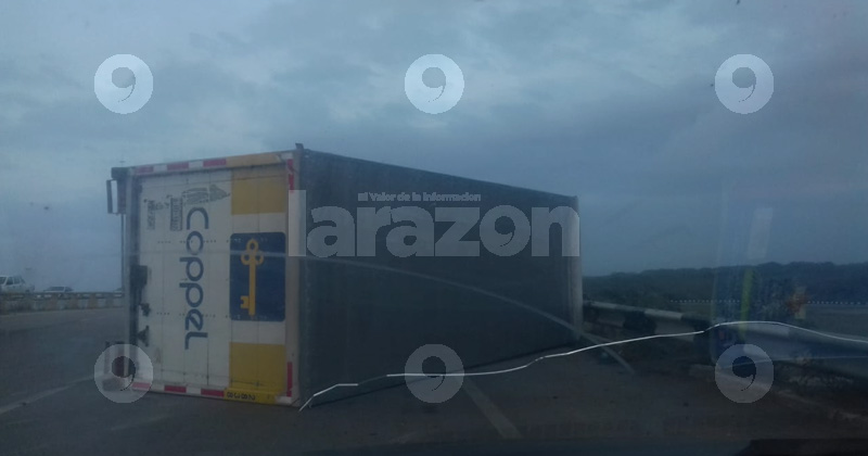 Al parecer por el fuerte viento la unidad quedó costaleada; se desconoce si hubo personas lesionadas