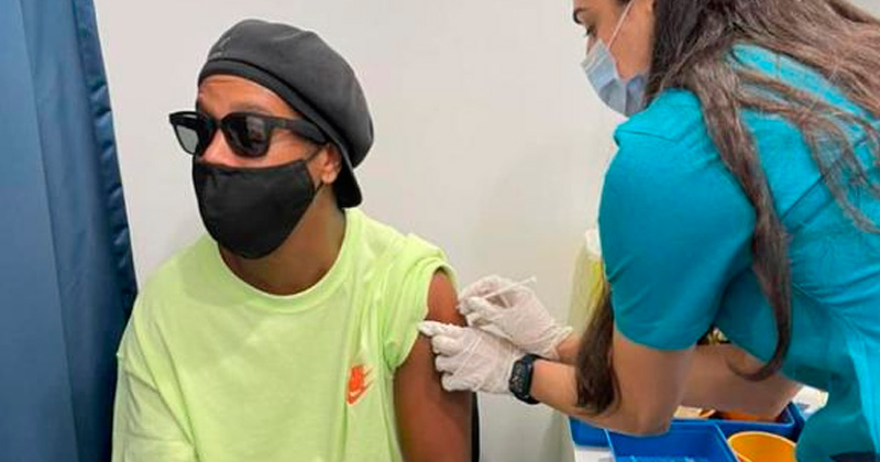 DUBAI.- Ronaldinho mostró en redes sociales el momento preciso en el que le colocaron la vacuna contra el Covid-19 en redes sociales. El exjugador del Barcelona, Querétaro y un sinfín de equipos en Sudamérica y Europa recibió la cura del coronavirus en Dubai.