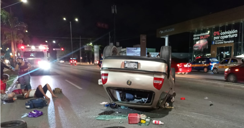 Debido al exceso de velocidad, el conductor perdió el control del volante al bajar el puente del Posada de Tampico; chocó contra el camellón y un poste
