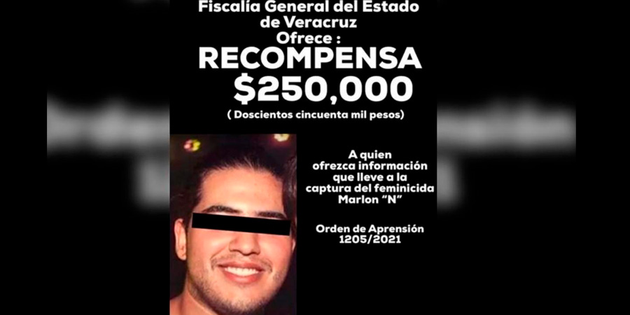 La Fiscalía General del Estado de Veracruz emitió una orden de búsqueda en contra de Marlon ‘N’ con una recompensa de 250 mil pesos.