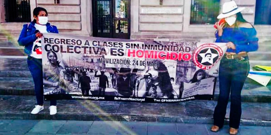 Estudiantes de Chihuahua, adheridos a la Federación Nacional de Estudiantes Revolucionarios Rafael Ramírez (FNERRR), se manifestaron en contra del regreso a clases