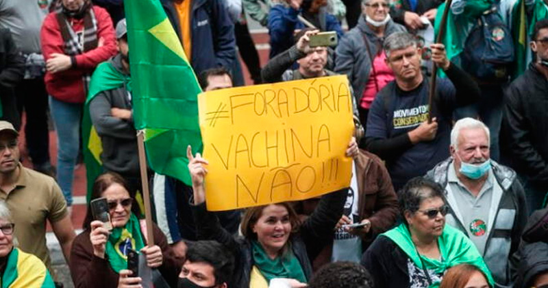 Manifestantes exigen el ‘Fuera Bolsonaro’, no solo por los crímenes de responsabilidad que ha cometido al no preparar al país para combatir la COVID-19 sino contra la política de gobierno